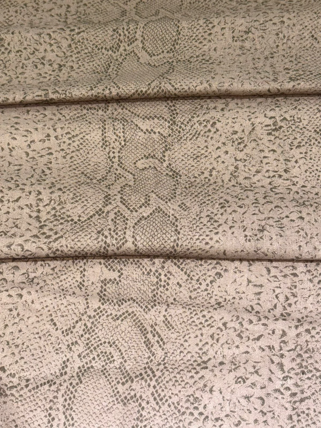 Tejido plano estampado que imita la piel de pertiles, como serpientes o lagartos en color marrón. Proporciona una apariencia exótica y elegante.