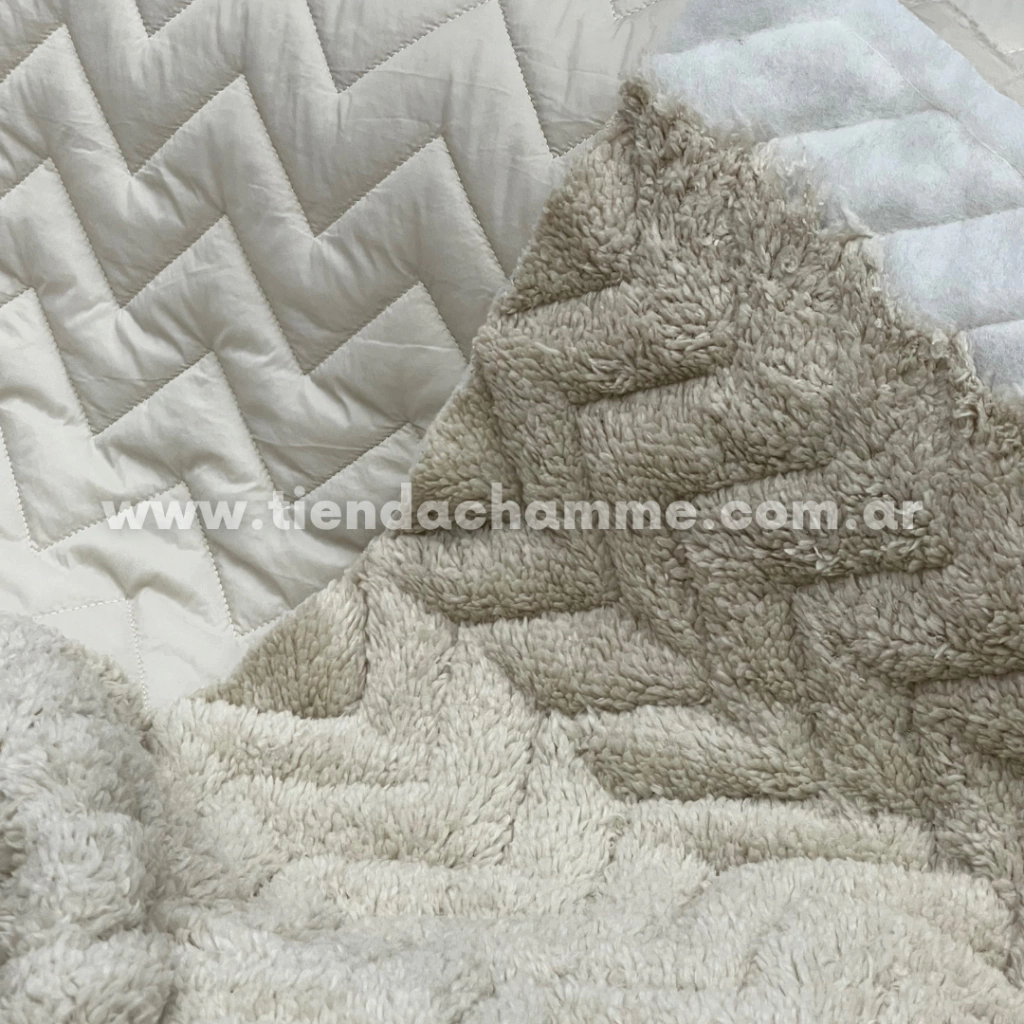 Este matelasse en forma de zig-zag, con watta de 200gr, con piel corderito. Es ideal para camperas, abrigos, tapados, acolchados, cubrecaMÁS, y mucho más. Lo podés usar reversible también.