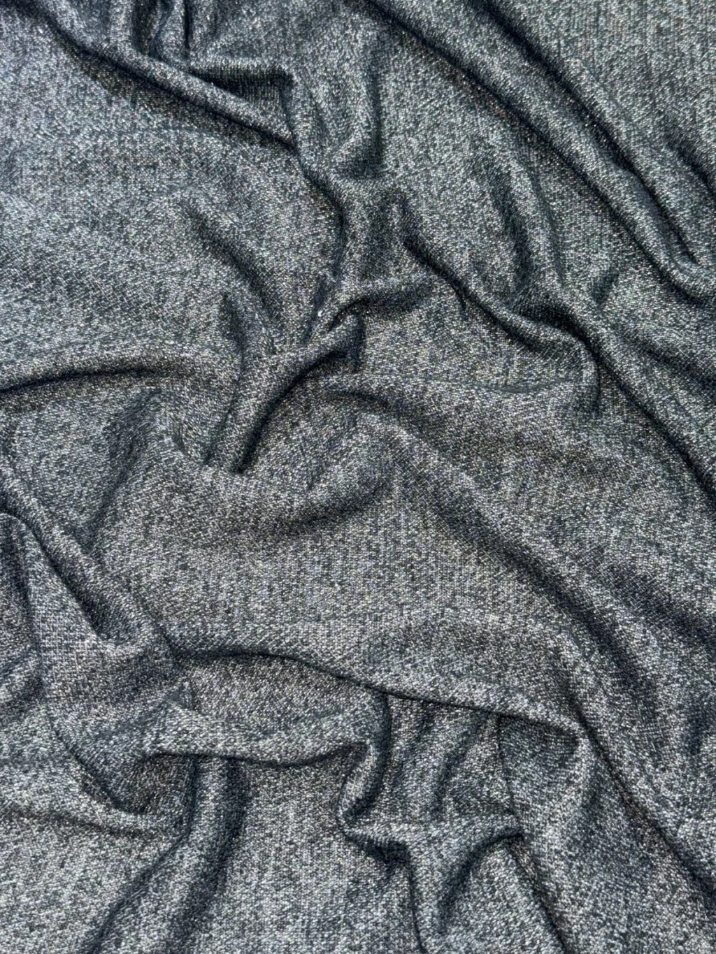 Tejido de punto que combina la textura natural y rústica con el brillo y resplandor del lurex, un tipo de hilo metálico. Esta combinación proporciona una apariencia única y elegante.