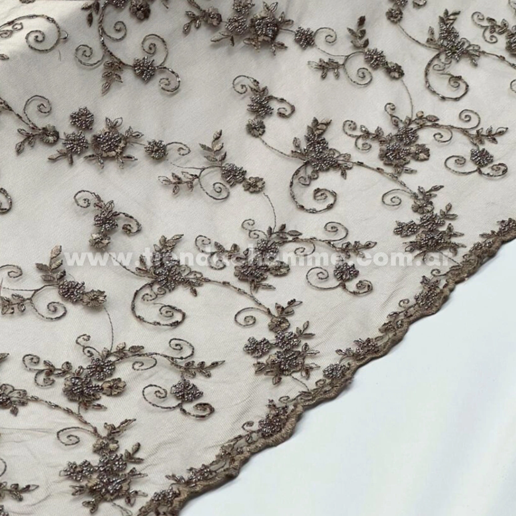 Un genero que transforma cualquier proyecto en una obra de arte. Con un ancho de 1,40 metros, este tul combina la ligereza y transparencia típica del tul con un bordado en relieve con piedras que aporta textura,profundidad y brillo, ideal para quienes buscan destacar en la confección.